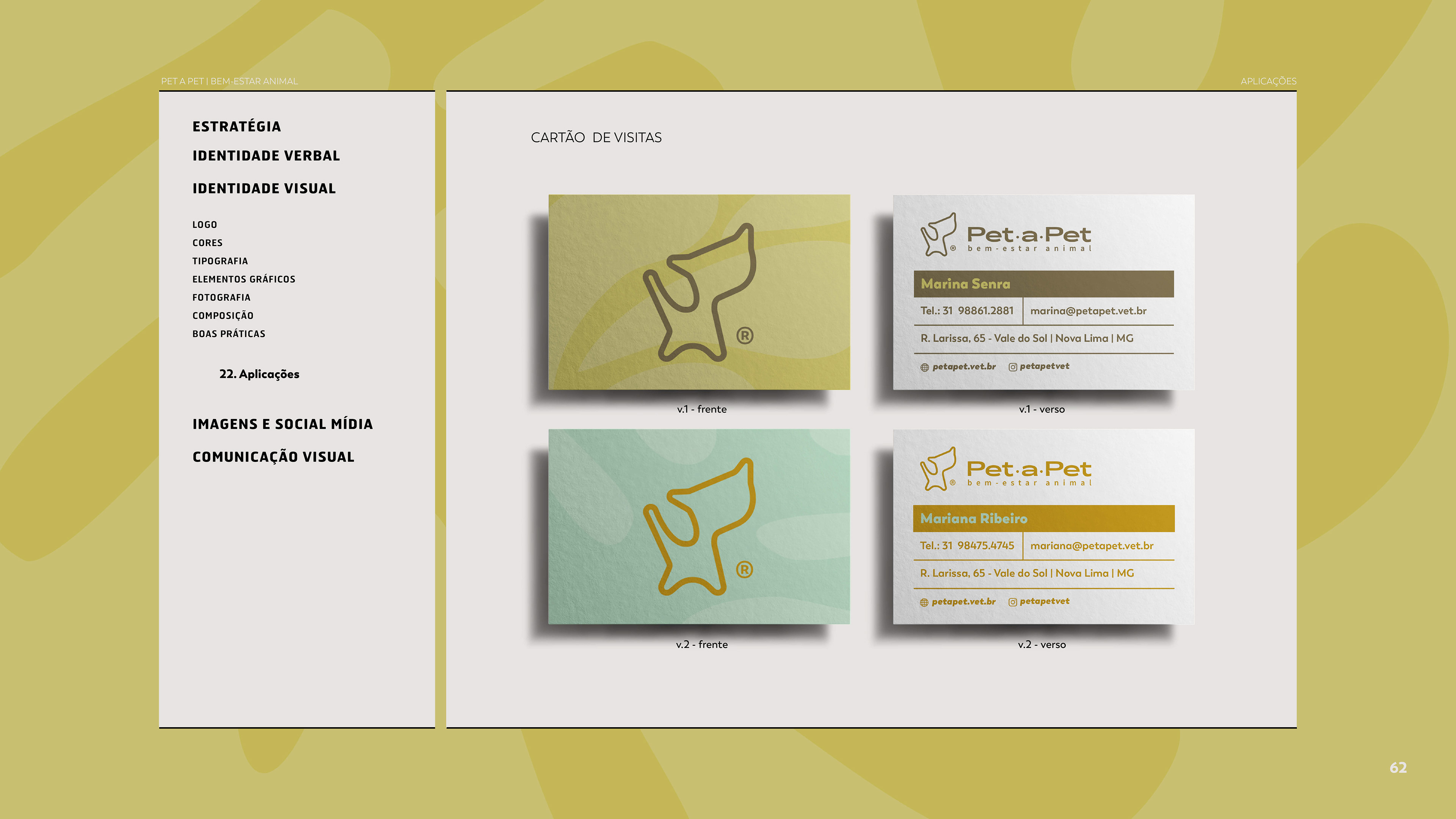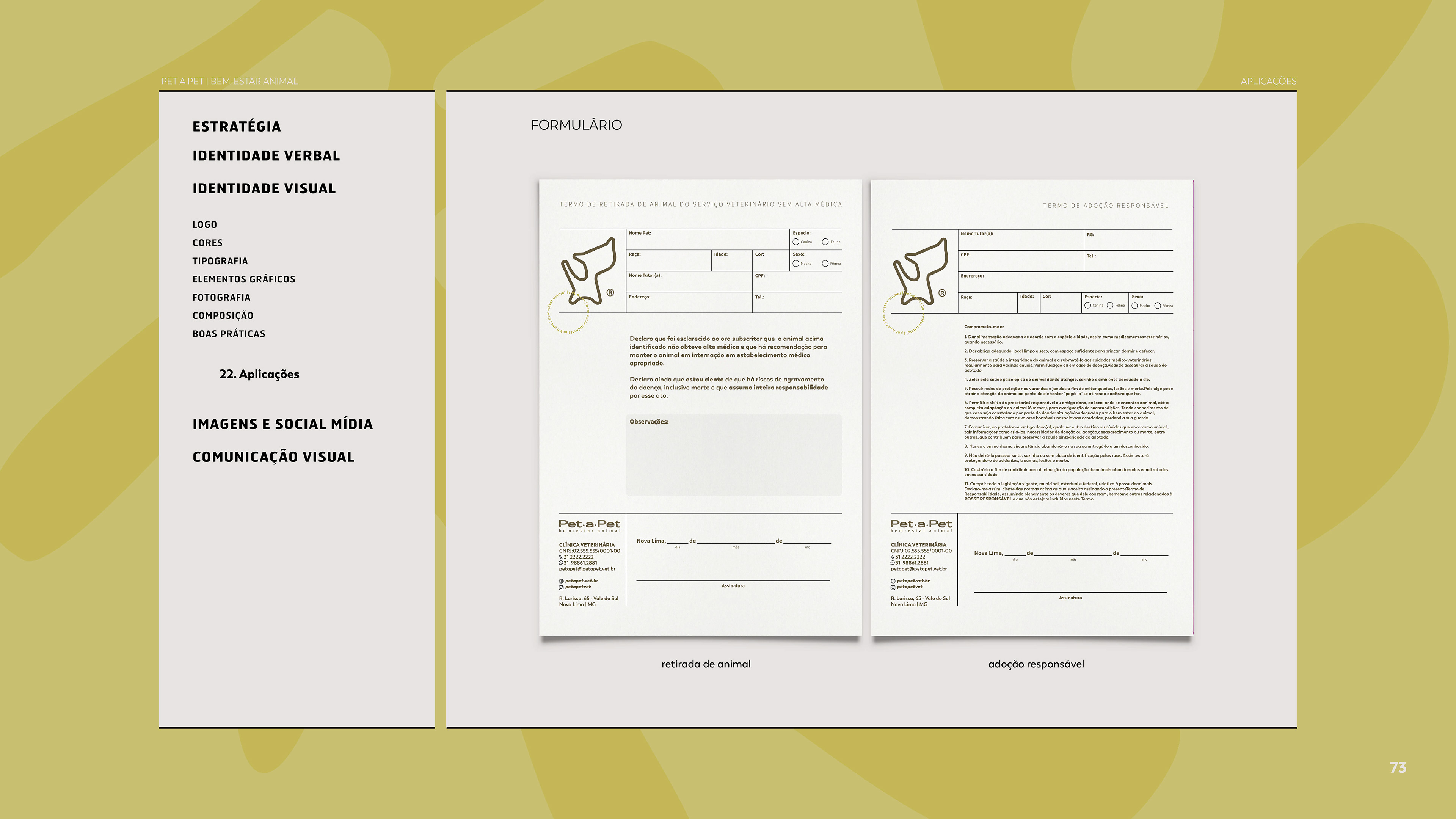 Ano: 2022/23 Cliente: Marina Senra Segmento: Saúde Veterinária Serviços: Branding + Identidade Visual Year: 2022/2023 Client: Marina Senra Segment: Veterinary Healthy Services: Branding + Visual Identity